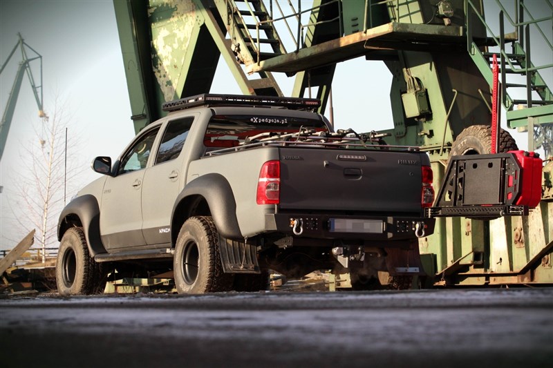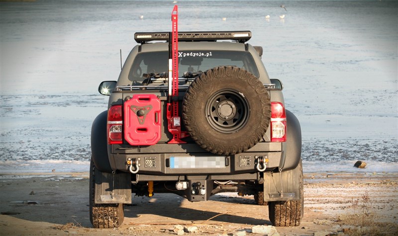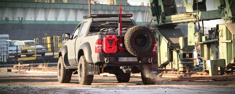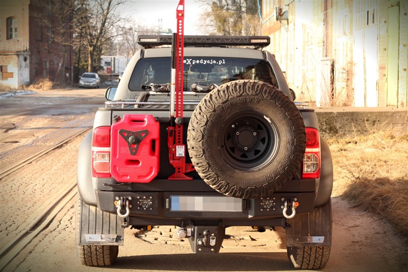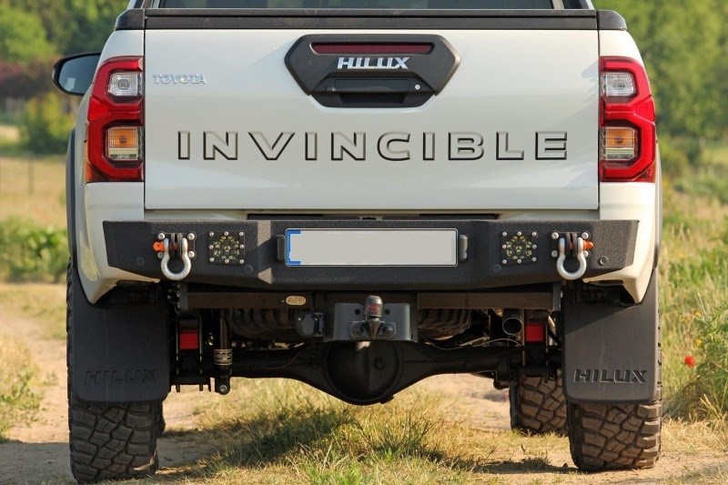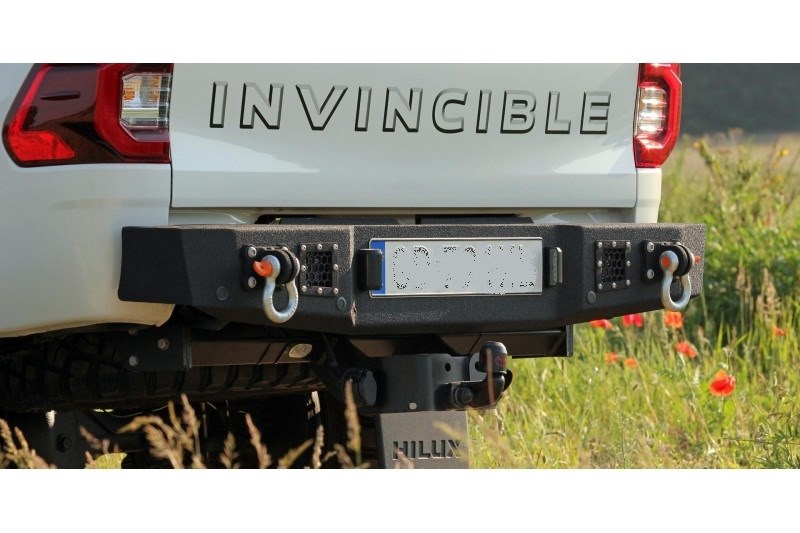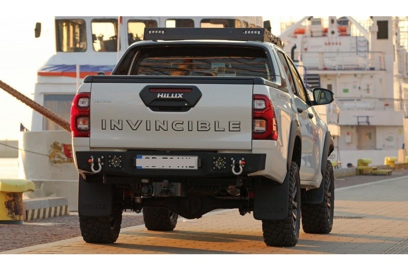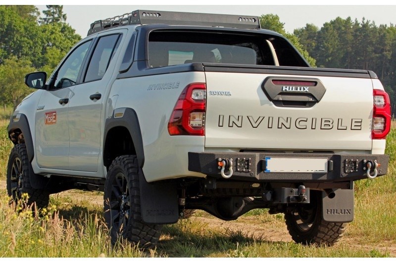 Ocelový zadní nárazník MorE 4x4 je určen pro vozidlo Toyota Hilux Revo, Invincible. Byl vyroben z 4mm plechu, výztuží a montážního systému z 6mm plechu. Nárazník má úchyty pro montáž držáku kola s kanystry, které lze objednat samostatně. Nárazník také poskytuje prostor pro montáž pracovních lamp, LED 27 W a registračního osvětlení, k dispozici jako příslušenství k nárazníku.