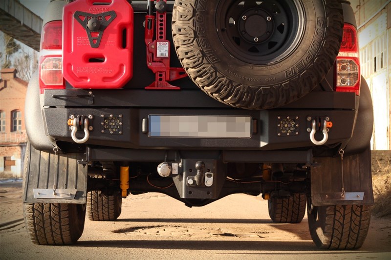 Nárazníky MorE 4x4 jsou pokryty vypalovací strukturální barvou „Cracked Desert“ nanesenou v práškové lakovací technice. Tato silná struktura poskytuje účinek podobný nátěru RAPTOR. Držák rezervního kola a kanystru není součástí zadního nárazníku a je třeba ho objednat extra.