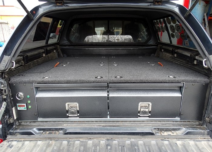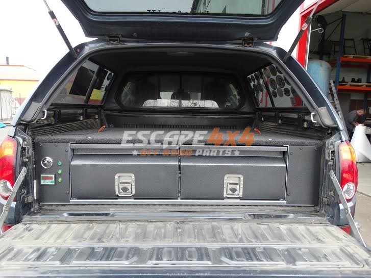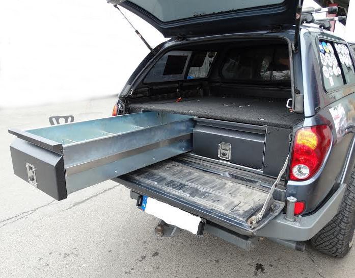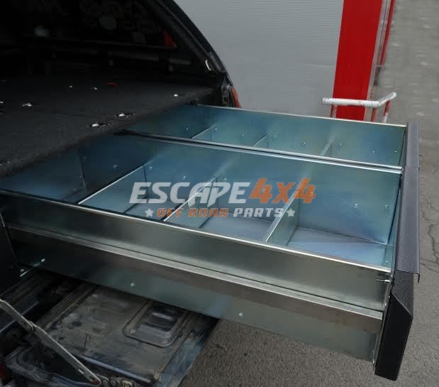 Zásuvkový systém Mitsubishi L200 od roku 2005. Vyrobeno z pozinkované oceli. Zásuvkový systém je demontovatelný, v nejvyšší kvalitě. Systém je vymyšlený pro expediční cestování s ohledem na maximální využití místa v autě.