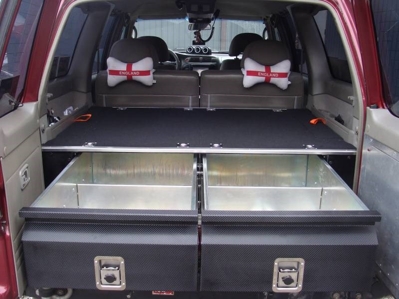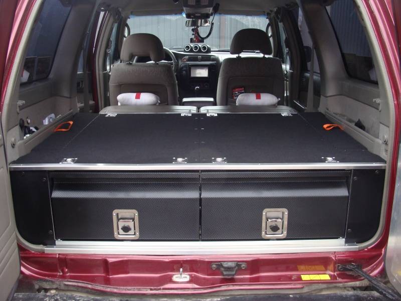 Zásuvkový systém Nissan Patrol Y61 GU4. Vyrobeno z pozinkované oceli. Zásuvkový systém je demontovatelný, v nejvyšší kvalitě. Systém je vymyšlený pro expediční cestování s ohledem na maximální využití místa v autě.