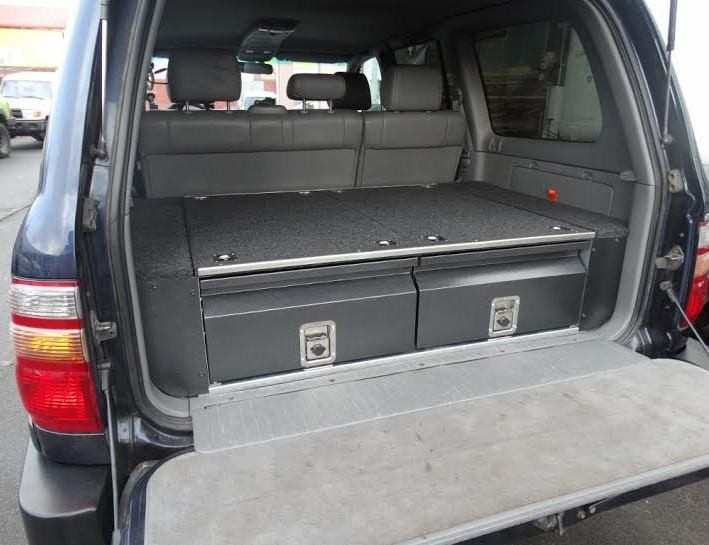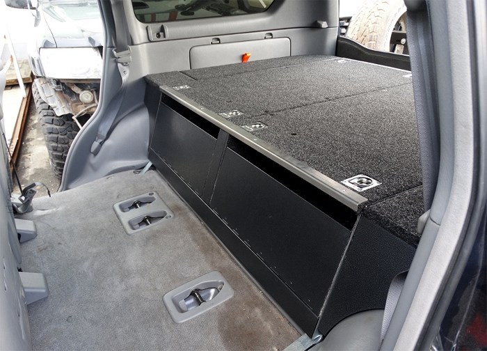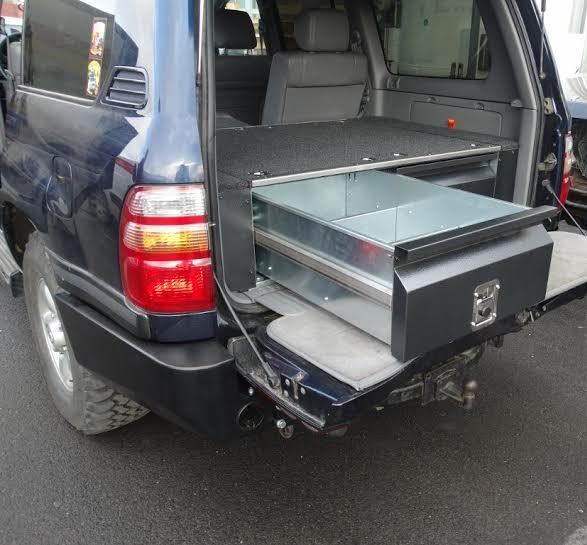 Zásuvkový systém Toyota LC 100, 98-08. Vyrobeno z pozinkované oceli. Zásuvkový systém je demontovatelný, v nejvyšší kvalitě. Systém je vymyšlený pro expediční cestování s ohledem na maximální využití místa v autě.