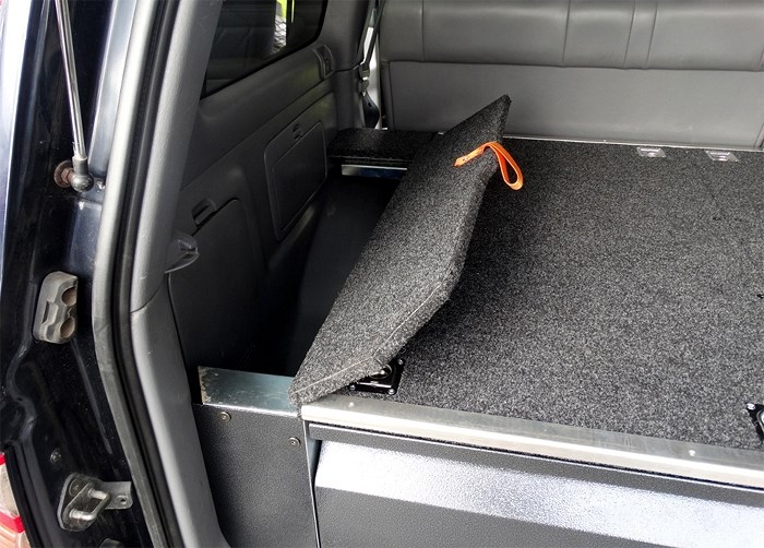 Nosná konstrukce stejně jako zásuvky jsou vyrobeny z ocelového plechu, který je pozinkovaný, což je velmi dobrá ochrana proti korozi. Otevírací mechanismus se skládá ze zásuvky (šuplíku) z nerezové oceli s vodícími lištami a ložisky v horní i dolní části. Tato konstrukce odstraňuje vůle mezi zásuvkou a nosnou konstrukci, poskytuje vysokou spolehlivost a odstraňuje vrzání za jízdy. Každá zásuvka je vybavena dvěma přihrádkami. Čela jsou pokryty fólií z uhlíkových vláken, což dává celému systému sportovní vzhled a chrání před škrábanci z provozu. Obě zásuvky jsou vybaveny robustními nerezovými zámky, které mohou být uzamčeny pomocí klíče. Horní část je vyrobena z překližky pokryté látkou a hliníkovými lištami, které kryjí hrany, což pěkně ladí s interiérem vozu. Systém je vybavena osmi úchyty (oky), které umožňují ochranu proti pohybujících se předmětů, jako jsou ledničky atd.