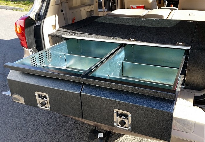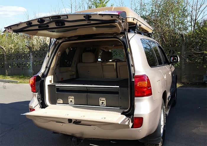 Zásuvkový systém Toyota Land Cruiser J200. Vyrobeno z pozinkované oceli. Zásuvkový systém je demontovatelný, v nejvyšší kvalitě. Systém je vymyšlený pro expediční cestování s ohledem na maximální využití místa v autě.
