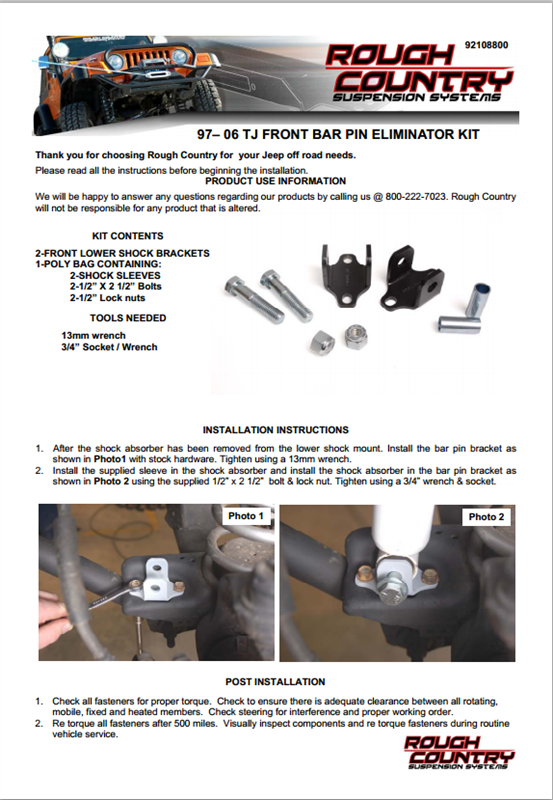Popis: Zesílené úchyty předních tlumičů Rough Country Jeep Cherokee XJ